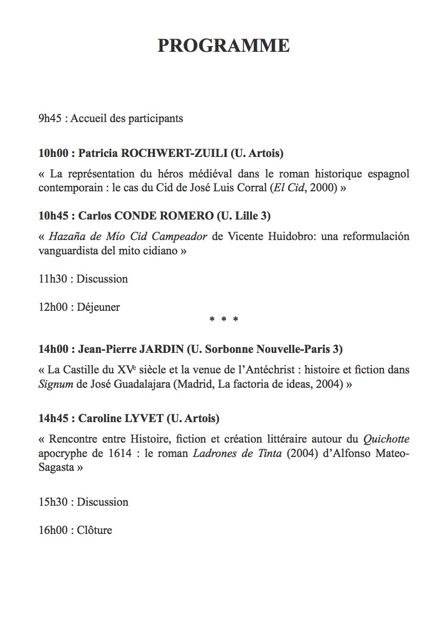 - Héroes y antihéroes en las letras áureas (programa Paris Lumières Alliance 2025-2026) – Jeudi 22 et vendredi 23 janvier 2026 Bâtiment Weber, Campus de Nanterre