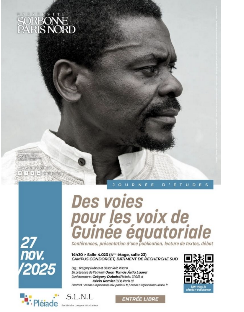 J’ai le plaisir de vous inviter à la rencontre « Des voies pour les voix de Guinée équatoriale » qui aura lieu en présentiel et à distance avec l’écrivain Juan Tomás Avila Laurel. Les étudiants vont lire leurs textes et écouter deux conférences.