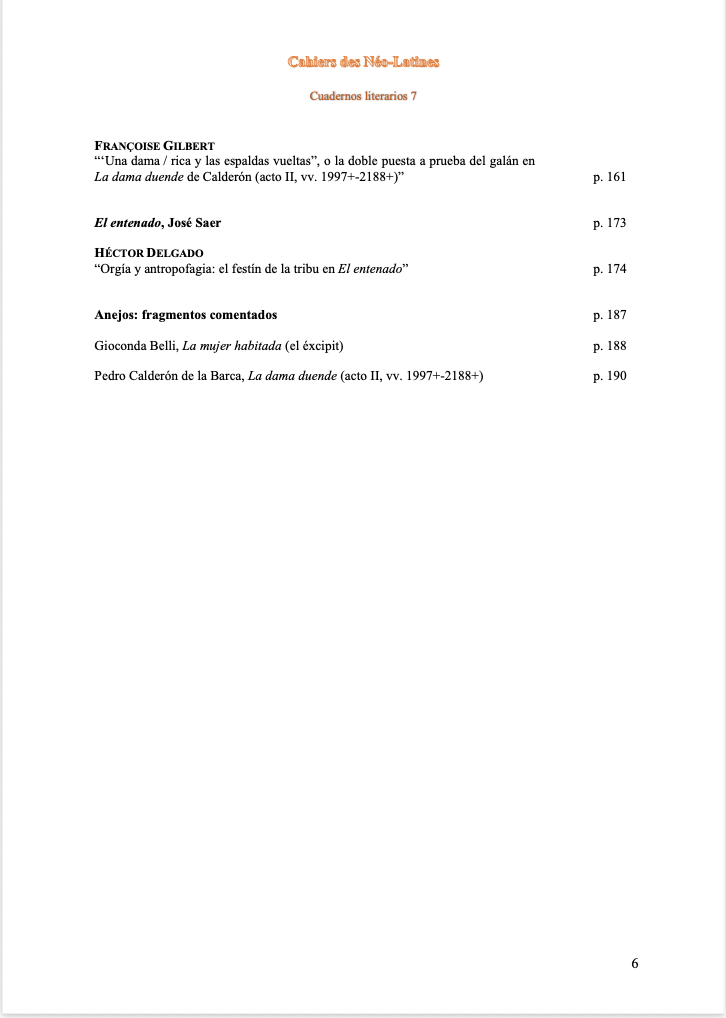 Ce septième volume des Cahiers littéraires est né de la volonté de la Société des Langues Néo-Latines d’apporter son soutien à la préparation des étudiants spécialisés en espagnol candidats à l’École Normale Supérieure de Lyon et à l’École Normale Supérieure « Ulm ». De plus, ces articles pourront intéresser tout amateur de littérature en langue espagnole.