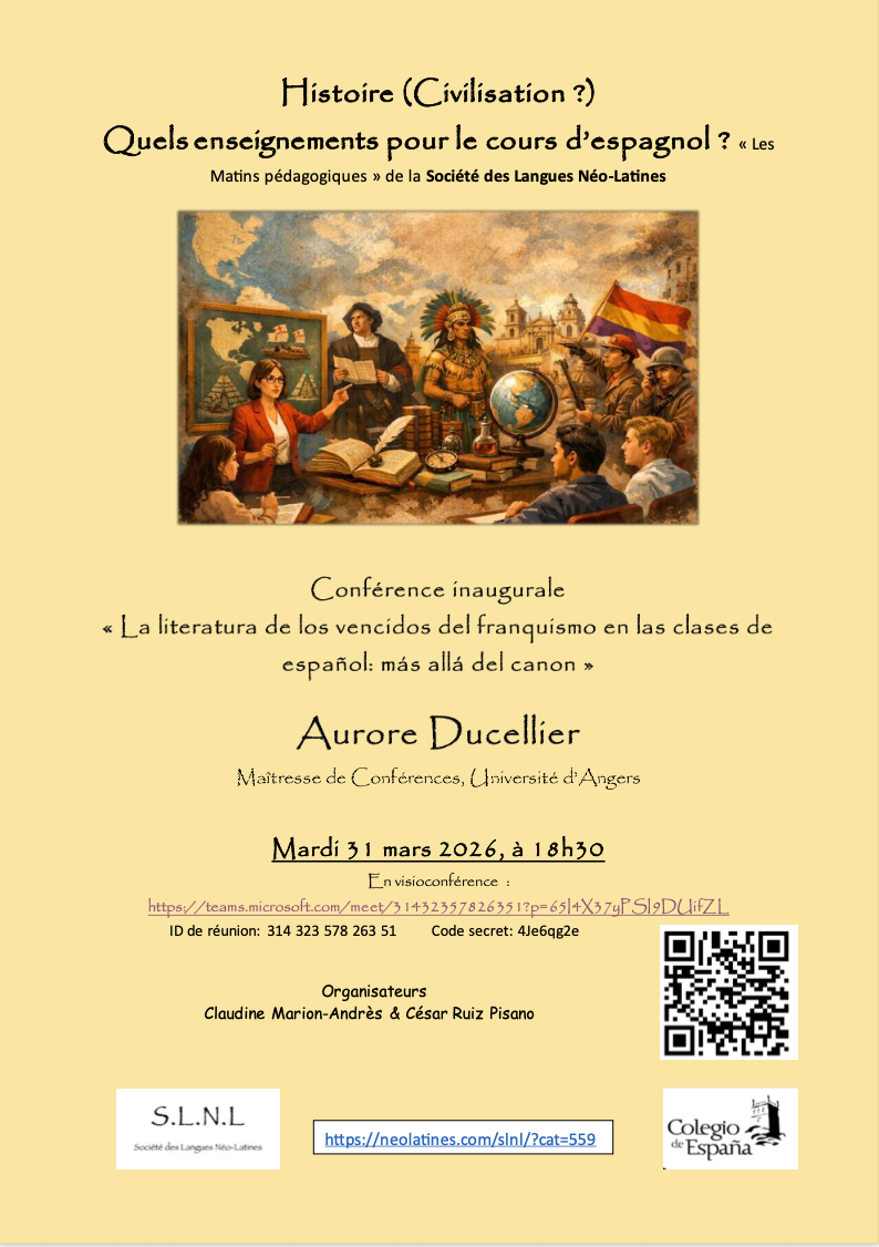 Nous vous invitons à participer à la conférence inaugurale des Matins pédagogiques autour de l’Histoire (Civilisation?) en cours d’espagnol.